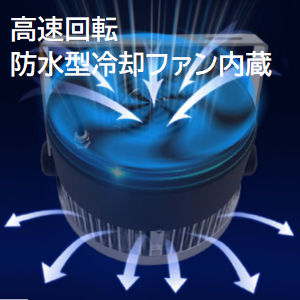 内部に防水タイプの高性能冷却ファンを内蔵しております。