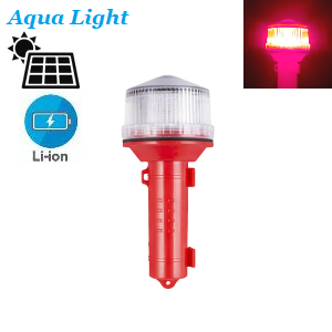 <リチウムイオン電池使用><発光色:赤><明暗センサー付><約1.5-2秒間隔3回連続点滅> 防水型 太陽電池式LED点滅標識灯 発光色:赤